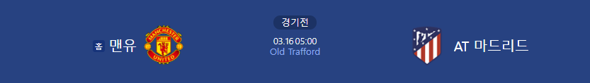 맨체스터 유나이티트 VS 아틀레티코 마드리드의 챔피언스리그 16강 2차전 경기가 3월 16일 05:00(한국시각)에 맨유 홈구장인 올드 트레포트에서 열립니다.