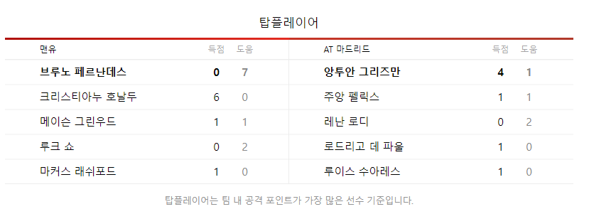 AT마드리드는 앙투안 그리즈만이 공격포인트가 가장 많습니다. 그 회 주앙 펠릭스, 루이스 수아레스 선수도 워낙 능력 있고 경험 있는 선수들이라 기대가 됩니다.