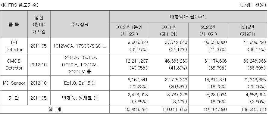 당사 및 종속회사가 영위하고 있는 사업은 의료용, 덴탈용, 동물용 및 산업용 이미징 설루션의 제조 ·판매 사업입니다. 다양한 연구활동을 통해 디지털 영상을 만들어 내는 기술과 제품들이 개발되었고 디지털 X-ray 시스템에서 디지털 영상을 만들어 내는 핵심 부품이 바로 Detector(디텍터)입니다. Detector는 제품에 사용되는 부품 기술의 종류에 따라 a-Si TFT (amorphous Silicon Thin Film Transistor) 방식의 Detector와 CMOS(Complementary Metal Oxide Semiconductor) 방식의 Detector로 나눌 수 있습니다.